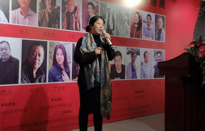 策展人赵静女士致辞 随后,力邦文化产业集团副总裁王金和策展人赵静也分别致辞,为冒霾前来的艺术家和媒体表示感谢。赵静女士表示,希望把长安画派更多的画家及作品推广出去,让全国各地的人们认识到陕西画家的实力,并希望把这个展做成影响全国、走向世界的国际化品牌展。
